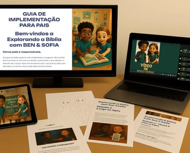 Sim! O material foi pensado para crianças de 5 a 12 anos. Ben e Sofia falam como crianças de 8 anos, mas os menores conseguem acompanhar com ajuda e os maiores podem aproveitar sozinhos.
