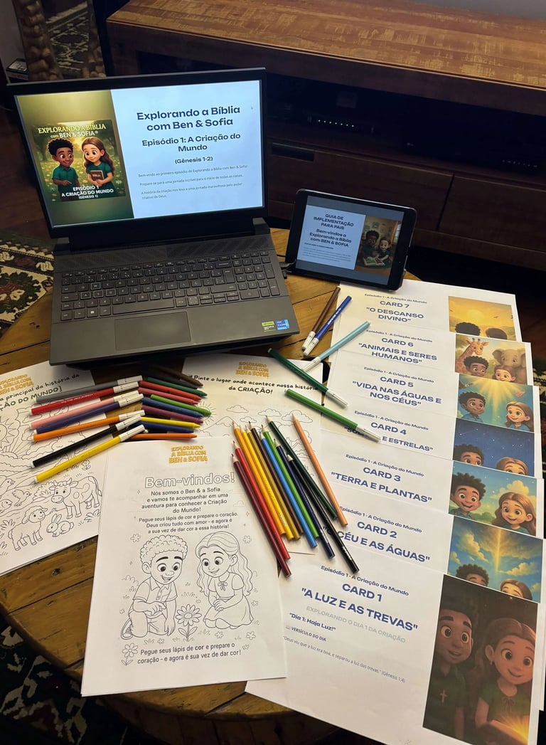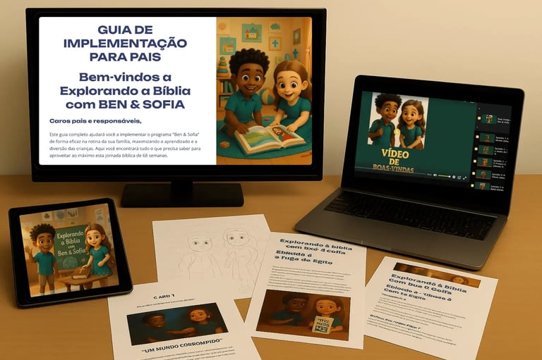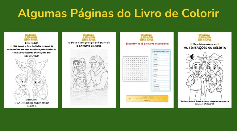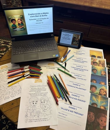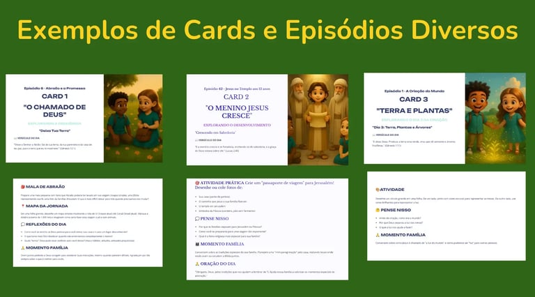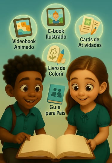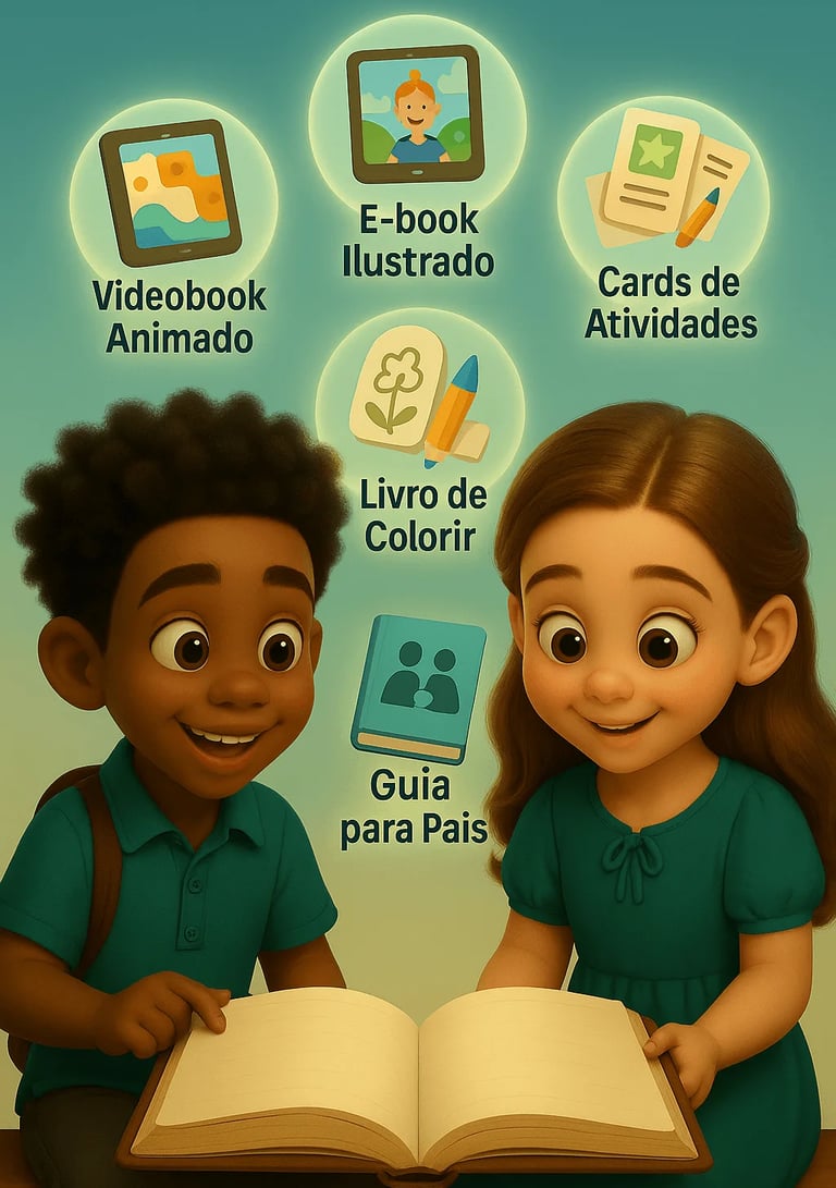 A cada semana, você recebe um novo episódio completo com videobook, e-book, cards, guia para pais e livro de colorir. Assim, sua família tem tempo para aproveitar bem cada lição antes da próxima aventura.